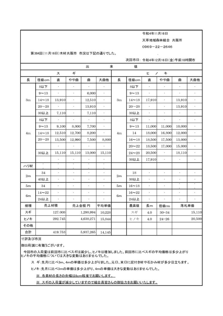 令和4年11月16日(水)に第384回共販市を開催しました。